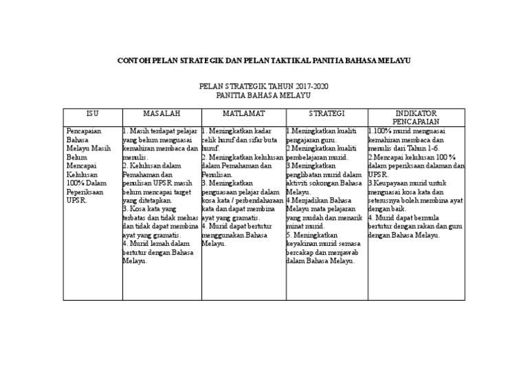 Doc Contoh Pelan Strategik Dan Pelan Taktikal Panitia Bahasa Melayu Sk Sulaiman Academia Edu